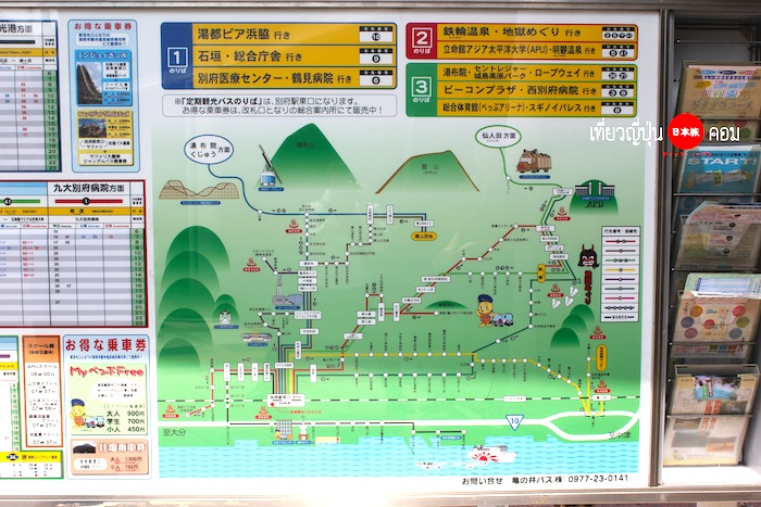 การเดินทางสำหรับวันนี้คือ ทัวร์พิชิตบ่อนรกทั้งแปด เริ่มต้นกันที่สถานี Beppu รีบจับรถไฟขบวนแรก มาถึงที่สถาณีโดยใช้เวลาเพียง 1 ชั่วโมงด้วยรถไฟขบวน Limited Express Yufu เป็นธรรมเนียมที่เดินทางเข้าสู่สถานีใหม่ เราจะต้องขอข้อมูลการท่องเที่ยวซะก่อน และซื้อตั๋วรถบัสให้เสร็จสรรพ โดยในวันนี้เราจะใช้ตั๋ว My Beppu Free Pass ราคา 900 เยน ในการขึ้นรถบัส เที่ยวในตัวเมืองเบปปุและบ่อน้ำพุร้อนทั้งแปด ส่วนตั๋วค่าเข้าบ่อน้ำพุร้อน Jigoku Meguri ให้ซื้อแบบเหมาจ่ายทั้งแปดแห่ง ราคาคนละ 2,000 เยน