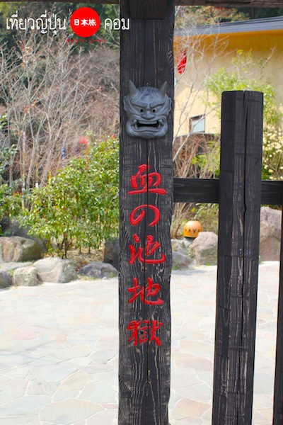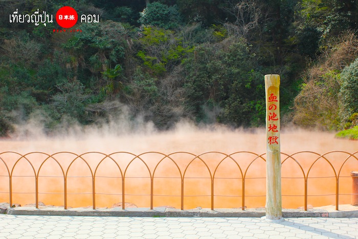 Chinoike Jigoku 血の池地獄 เป็นบ่อที่มีความโดดเด่นมาก คือมีสีแดงฉานเหมือนเลือด โดยที่สีแดงนี้มาจากดินสีแดงที่อยู่บริเวณนั้นถูกน้ำร้อนธรรมชาติทำ ปฏิกิริยาร้อนระอุถึง 78 องศา เลยกลายเป็นที่มาของบ่อน้ำพุร้อนสีแดงแห่งนี้ มีชื่อเรียกอีกอย่างว่า Akayusen