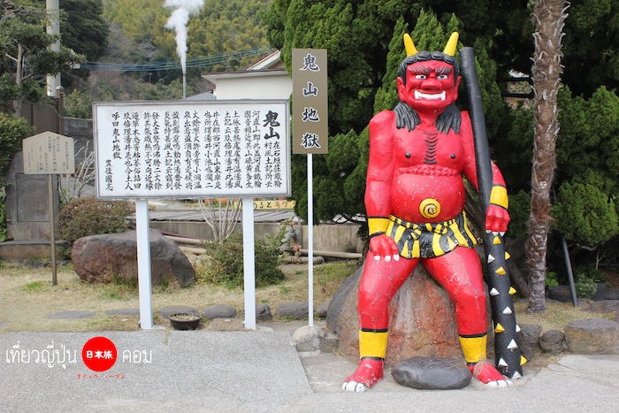 ที่บ่อน้ำพุร้อนแต่ละบ่อจะมียักษ์เฝ้าอยู่ แต่ละตนมี ลักษณะต่างกันออกไป อย่างที่ Chinoike แห่งนี้นั้นเป็นยักษ์สีแดงน่าเกรงขาม (นี่เกรงขามแล้ว?)
