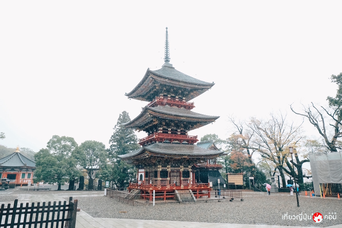 อันดับต่อมาคือ เจดีย์สีแดง 3 ชั้น สัญลักษณ์ของวัดนาริตะซัง ที่อยู่คู่กับวัดมาอย่างช้านาน ซึ่งสิ่งที่คนนิยมมาขอพรกันมากที่สุดในวัดแห่งนี้ คือ เรื่องความโชคดี ความก้าวหน้าในหน้าที่การงาน และการสมหวังในความรัก