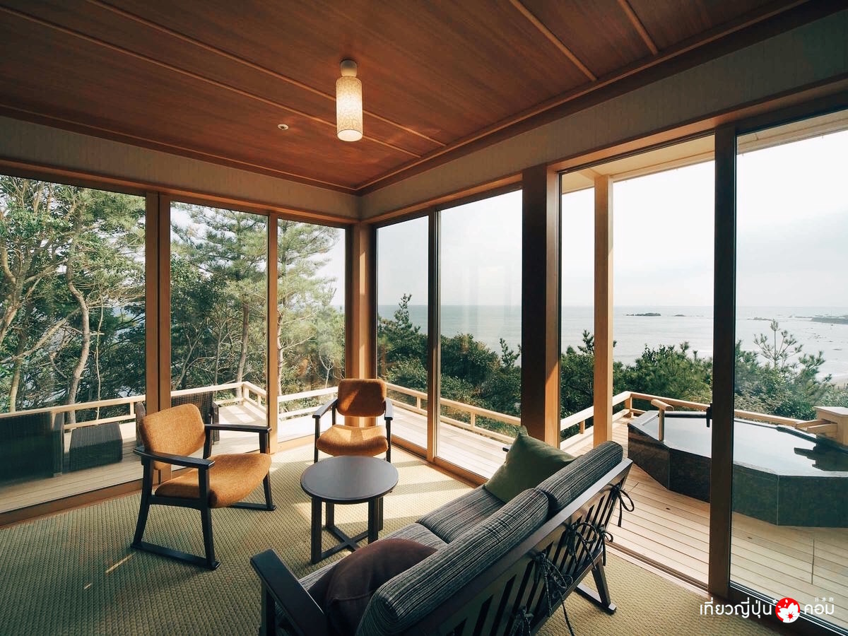 นอกจากโลเคชันอันเฉพาะตัวแล้ว อุมิ โตะ โมะริ ยังเป็นโรงแรมสไตล์เรียวกัง ที่ตกแต่งได้อย่างสวยงาม โดยที่ยังคงเสน่ห์ของความเรียบง่ายตามแบบฉบับญี่ปุ่นดั้งเดิมไว้ได้เป็นอย่างดี ด้านสิ่งอำนวยความสะดวกก็มีครบ ห้องพักมีขนาดกว้างขวาง มีออนเซ็นส่วนตัวให้ใช้บริการได้ที่ระเบียง อาหารก็อร่อยมาก ๆ อีกด้วย