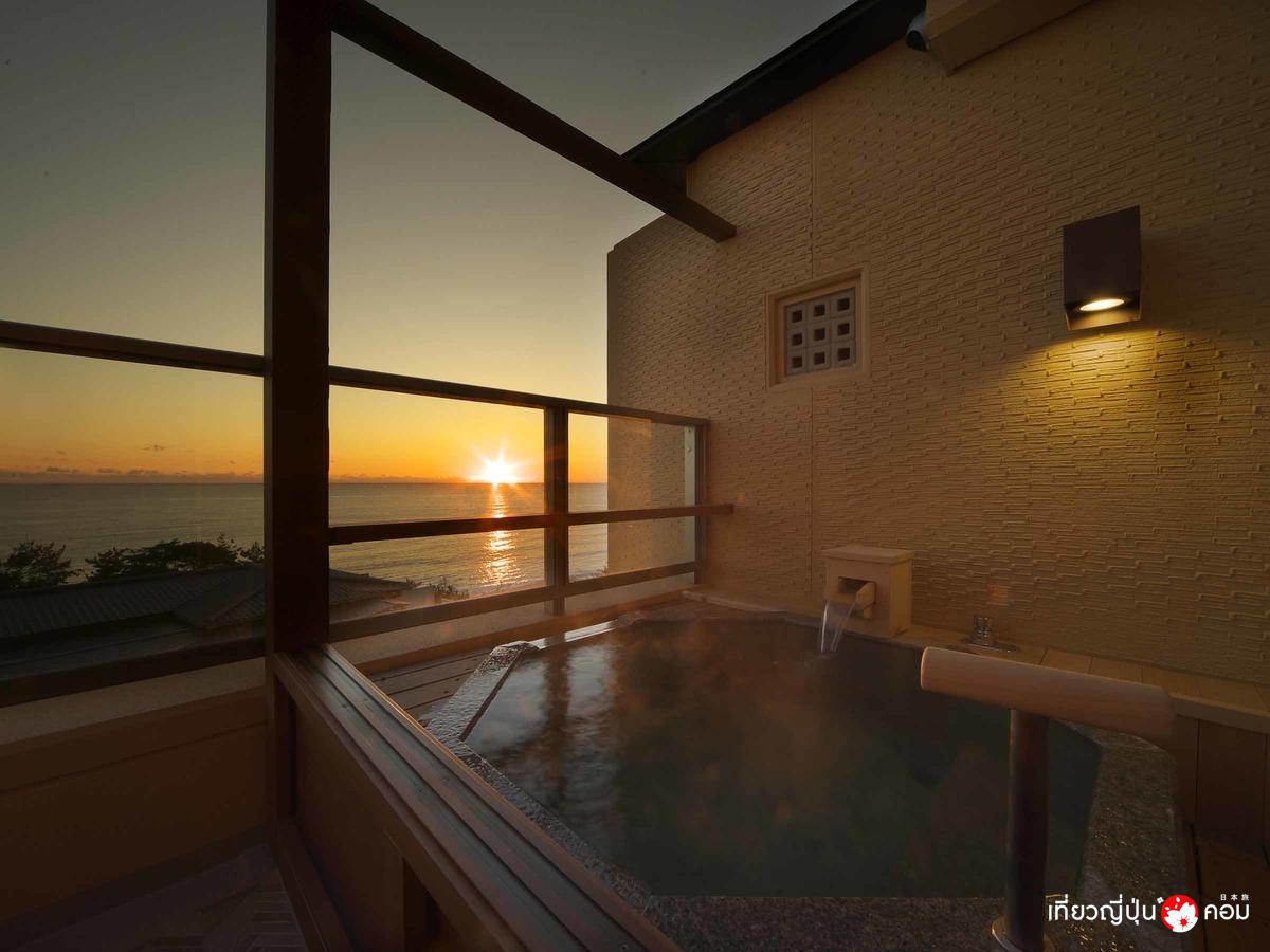 โรงแรมสุดหรู “อุมิ โตะ โมะริ” (แปลว่า ทะเล กับ ป่าไม้) โรงแรมที่ช่วงปีใหม่ จะมีทั้งคนญี่ปุ่น และนักท่องเที่ยวทั่วไปจองกันเต็มตลอด เพราะพวกเขาต้องการสัมผัสกับแสงแรกของปีก่อนใคร เมื่อพระอาทิตย์ได้โผล่พ้นเส้นแบ่งผืนฟ้าและมหาสมุทรขึ้นมา ณ ดินแดนที่อยู่สุดขอบฝั่งตะวันออกของประเทศแห่งนี้นั่นเอง