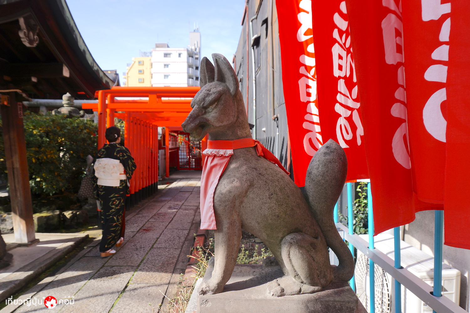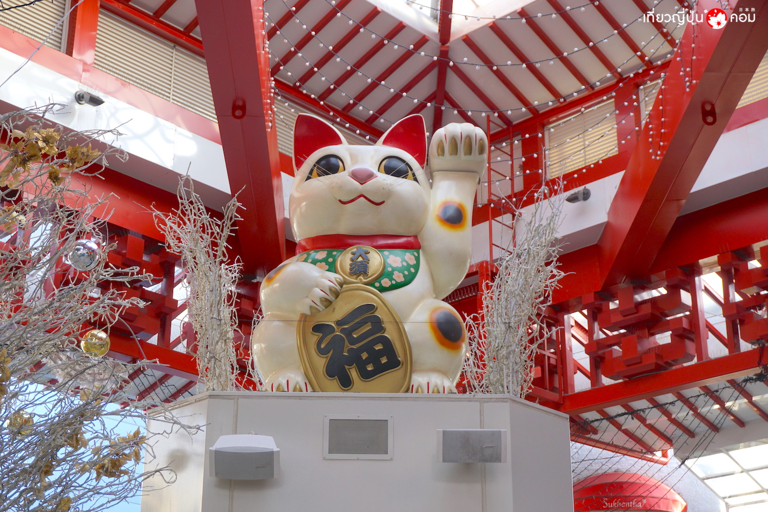 เมื่อเดินไปจนสุดถนนจะได้พบกับอีกหนึ่งสัญลักษณ์ของย่านนี้คือ แมวนางกวักหรือมากิเนโกะ นั่นเอง