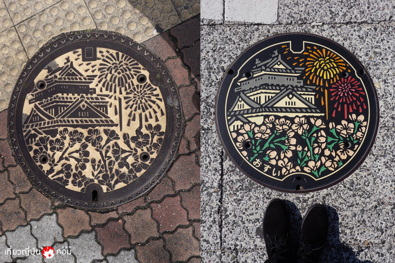 โดยมีจุดหมายอยู่ที่ ปราสาทโอคาซากิ (Okazaki Castle) ที่นำมาใช้ทำเป็นลายฝาท่อของเมือง