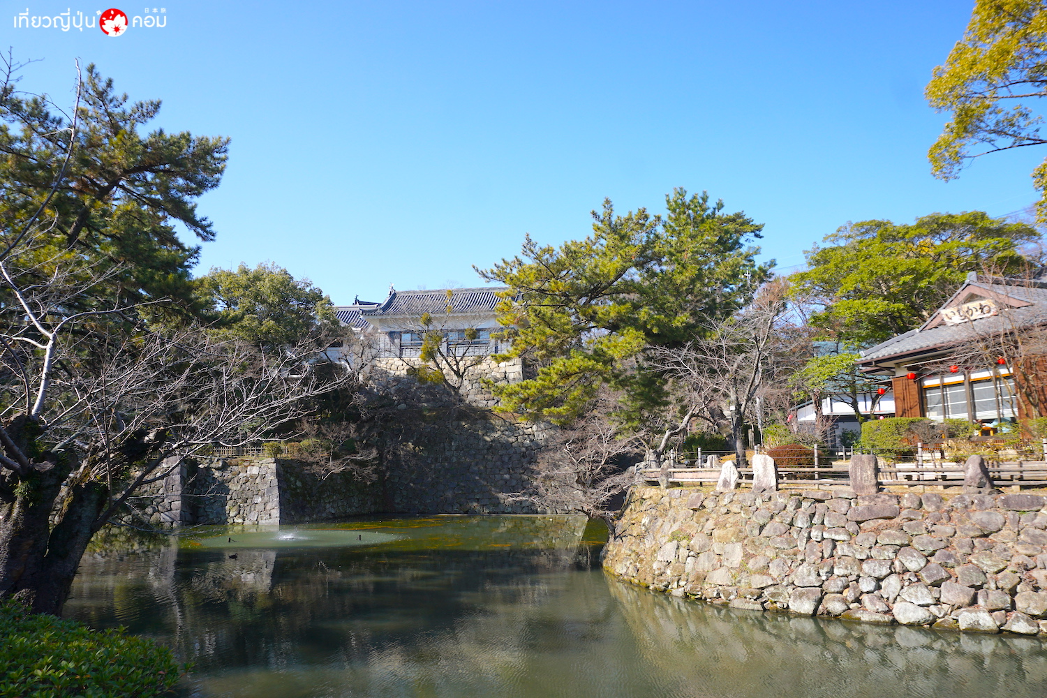 มุมสะพานแดงข้ามไปตัวปราสาทเป็นจุดถ่ายรูปยอดนิยม