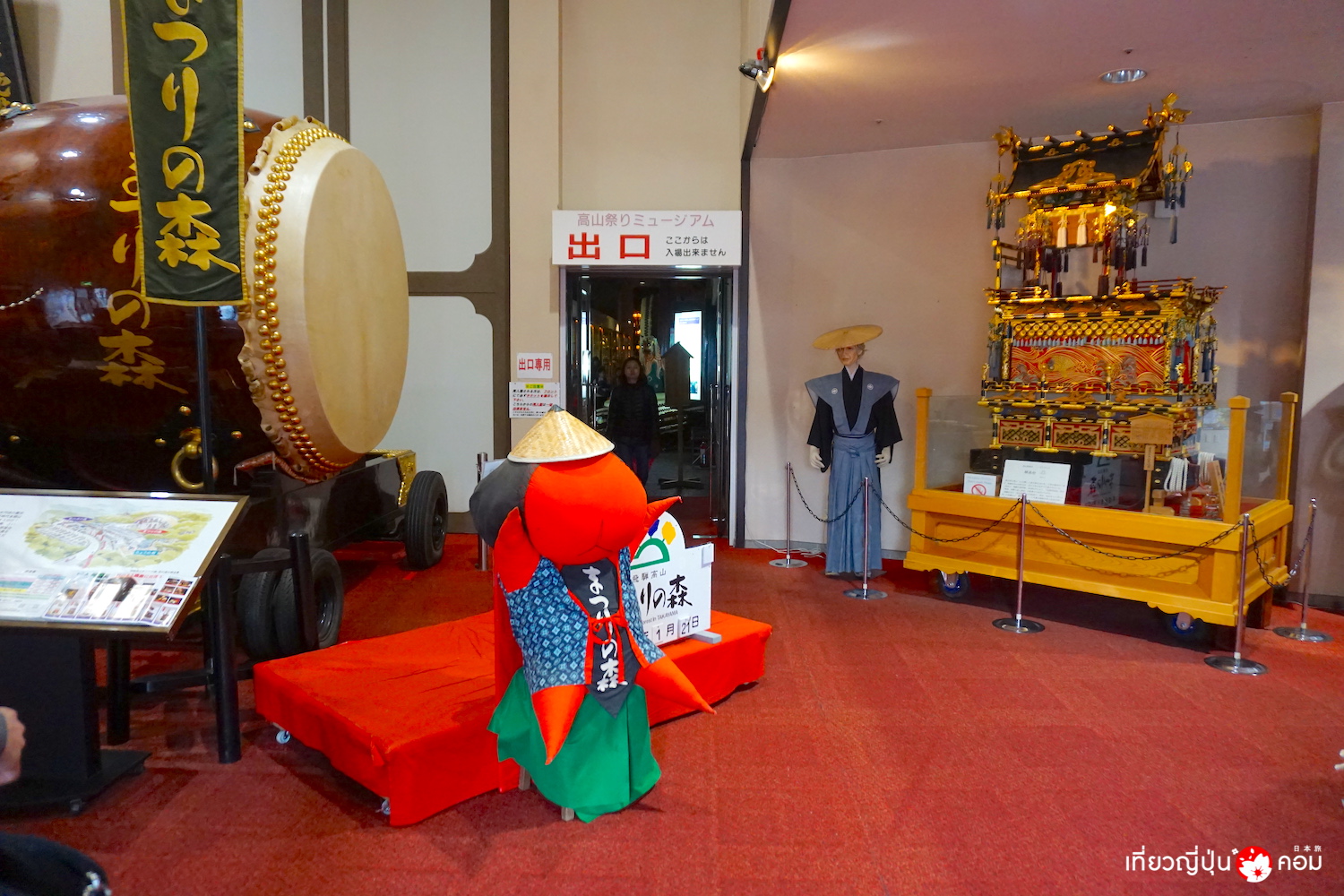 หลังจากรวมตัวกันที่สถานี Nagoya ขึ้นรถบัสตามคันและที่นั่งที่กำหนดไว้ ออกเดินทางวิ่งตรงสู่เมือง ทาคายามะ (Takayama) ทันที โดยแวะสถานที่แรกคือที่ พิพิธภัณฑ์เทศกาลทาคายามะ (Takayama Matsuri Museum) ที่ตั้งอยู่นอกใจกลางเมืองเก่า เพื่อแวะพักทานอาหารเที่ยงกันก่อน และหากมีเวลาเหลือก็จะมีเวลาอิสระให้เดินเข้าไปชมด้านในพิพิธภัณฑ์ที่จัดแสดงเกี้ยวแห่ในเทศกาลทะคะยะมะได้