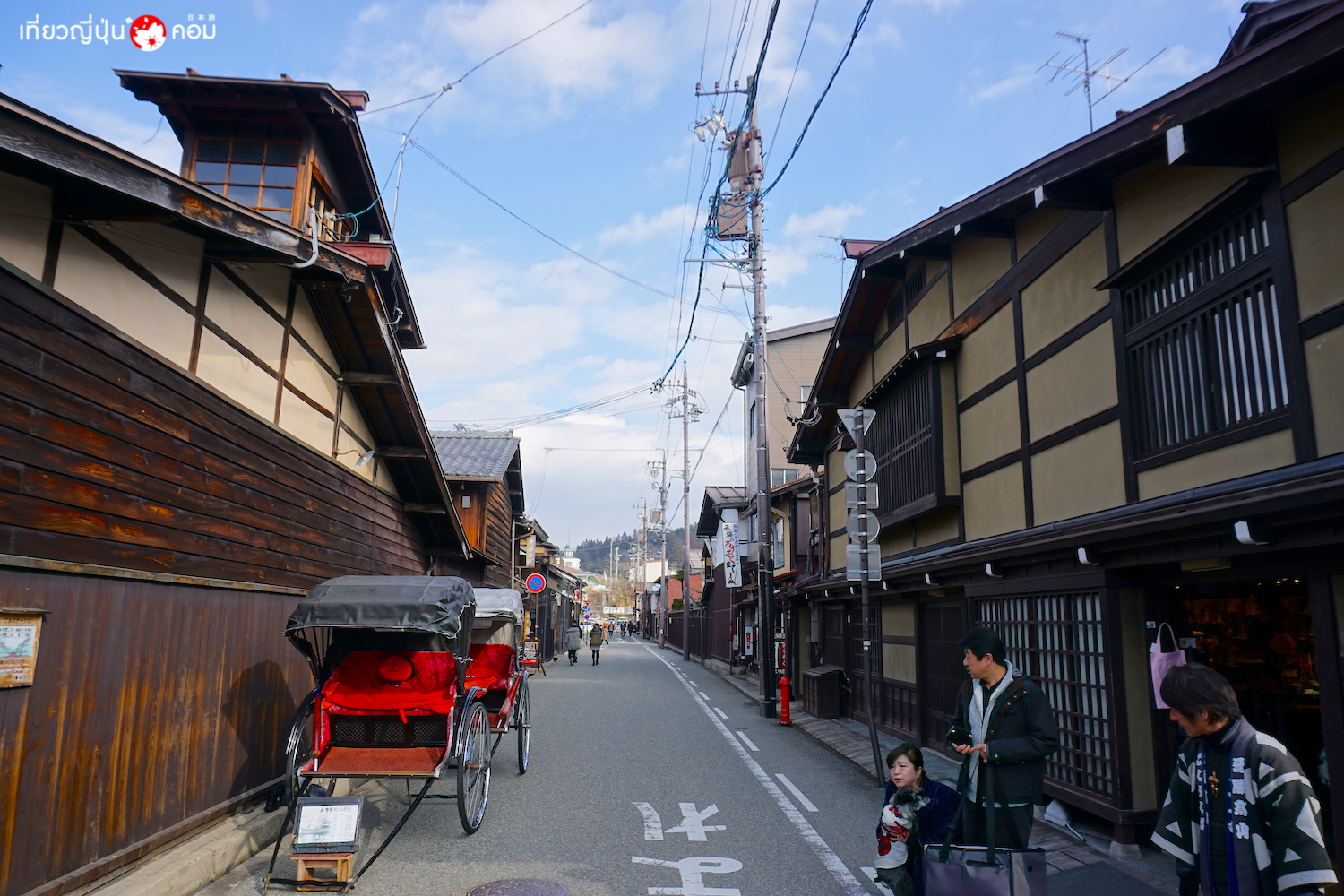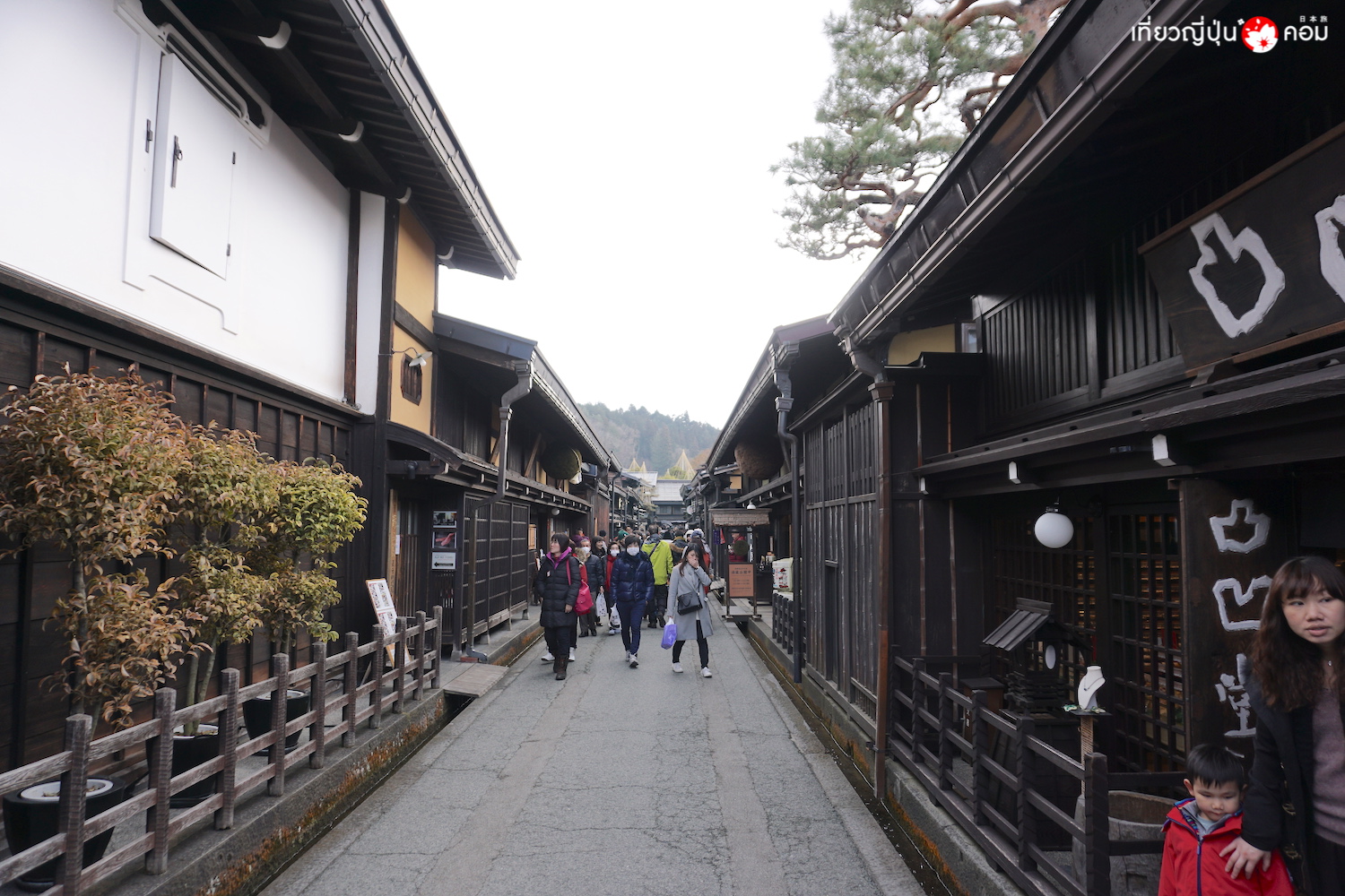 หลังจากนั้นก็นั่งรถบัสต่อมา เดินเล่นในเขตย่านการค้าเก่า ซันมะจิ-ซุจิ (Sanmachi-Suji) ที่มีความเจริญรุ่งเรืองมาตั้งแต่ยุคสมัยเอโดะ และยังรักษาความเป็นเอกลักษณ์ของบ้านเรือนเก่า โดยบรรดาร้านค้าและอาคารต่างๆ ได้รับการอนุรักษ์สภาพของบ้านโบราณไว้ให้คงอยู่มาจนถึงปัจจุบัน ร้านค้าส่วนใหญ่จะเริ่มเปิดทำการตั้งแต่เวลา 10.00 น. เป็นต้นไปถึงเวลาประมาณ 17.00 น.