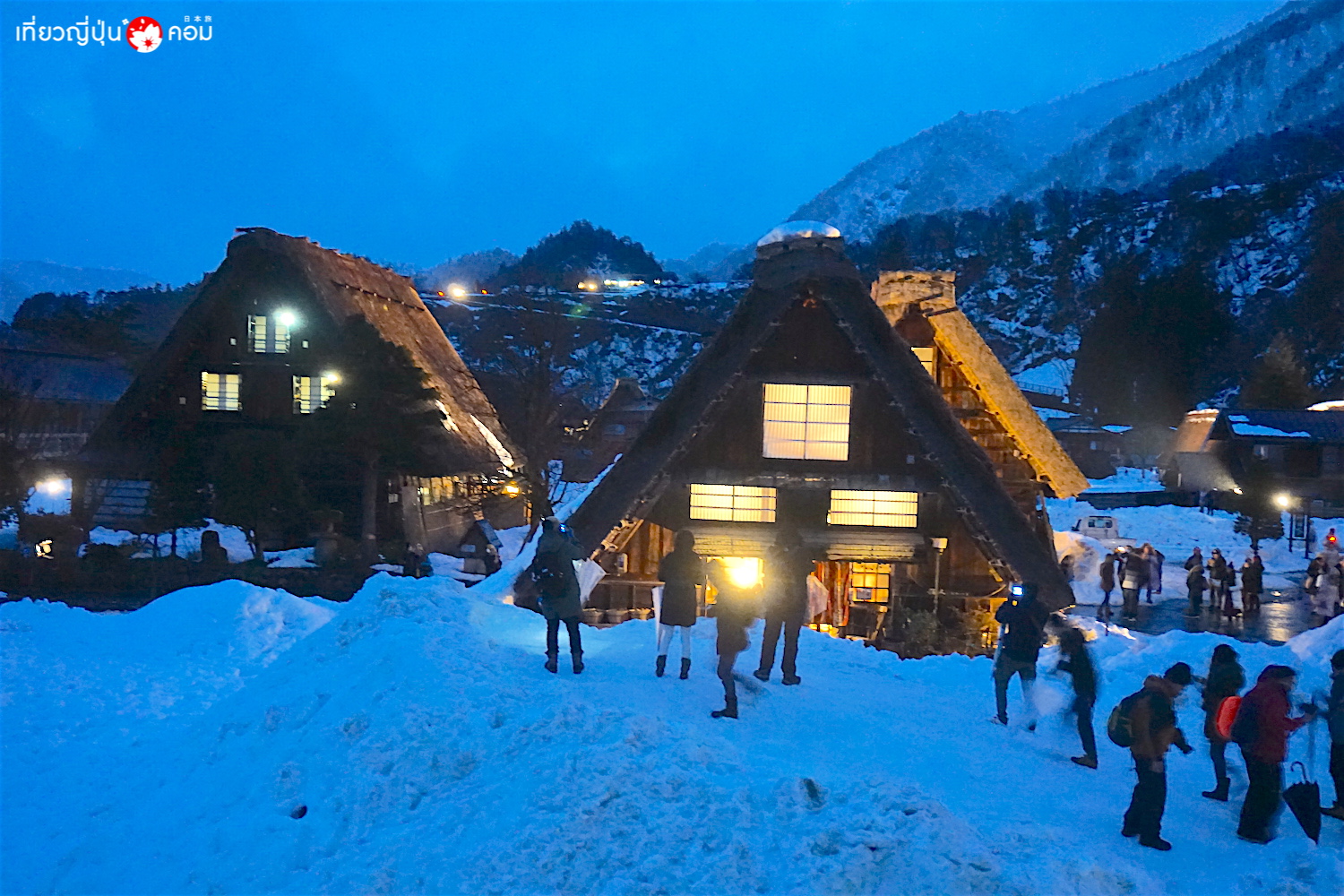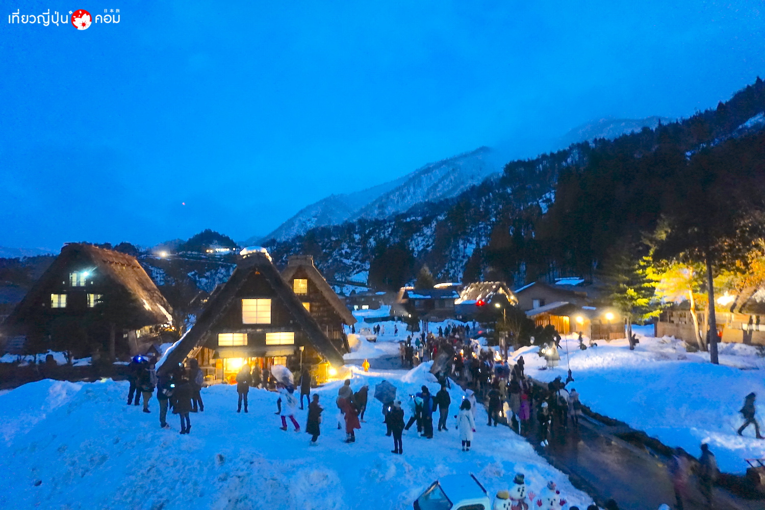 หมายเหตุ: ทัวร์ที่เราเลือกใช้บริการในครั้งนี้ ออกเดินทางจากนาโงยะ และแวะเที่ยวที่ทาคายามะก่อน จึงทำให้เดินทางมาถึงหมู่บ้านชิราคาวะโกในช่วงเย็น ทำให้ไม่สามารถไปรับบัตรเพื่อขึ้นไปจุดชมวิวได้ทัน ดังนั้นถ้าหากใครอยากชมหมู่บ้านช่วงเวลาประดับไฟในมุมสูง แนะนำให้เลือกจองทัวร์จากทาคายามะ หรือ คานาซาวะ ที่เดินทางมาถึงหมู่บ้านในช่วงเที่ยวหรือไม่เกินบ่ายโมง เพื่อที่ทางรถทัวร์จะได้ไปต่อคิวรับบัตรพาเราขึ้นไปถ่ายรูปด้านบนได้ครับ