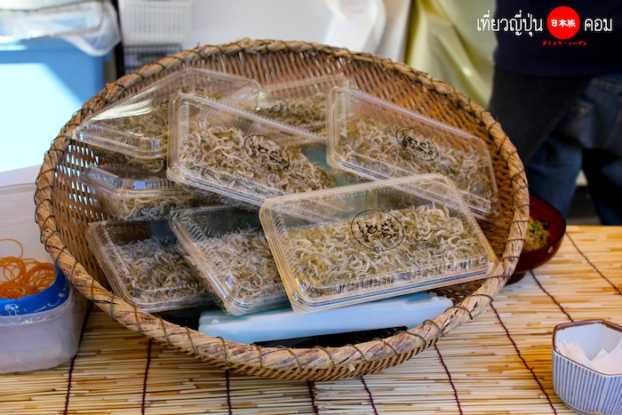 เจ้าปลาตัวเล็กๆที่เห็นอยู่นี้เป็นสินค้าโอทอปของเกาะ Enoshima ภาษาญี่ปุ่นเรียกว่า Shirasu しらす จะกินเปล่าๆแบบนี้เลยก็ให้รสชาดมันๆเค็มๆดี หรือจะเอามาโปะเป็นข้าวหน้าต่างๆก็ดูน่าลองนะครับ ใครอยากสั่งเป็นเรียกว่า Shirasu-Don มีขายแทบทุกร้านครับ (ไม่แน่ใจว่าเป็นปลาชนิดไหน แต่เขาว่าเป็นปลาประเภทเดียวกับ แองโชวี่หรือซาร์ดีน)