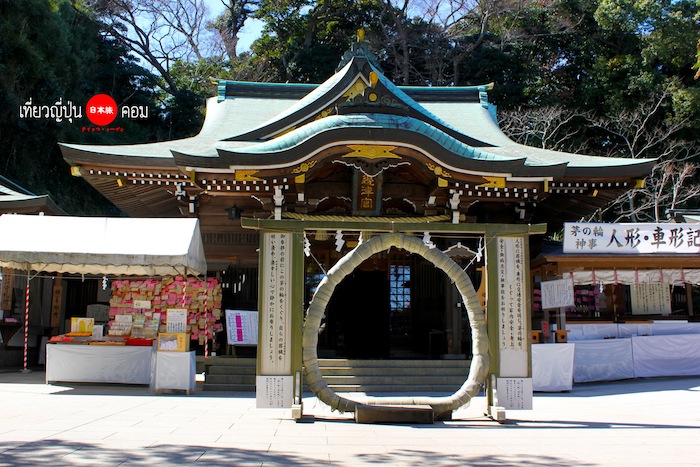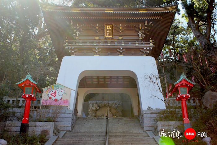 ถึงแล้ว ศาลเจ้า Hetsu no Miya 辺津宮 เดินลอดผ่านห่วงด้านหน้าเพื่อโชคลาภในทุกๆด้าน งานไม้แกะสลักเหนือประตู คือ ท่านเบนเทนผู้งดงาม และด้านหลังเป็นรูปปั้นมังกรห้าเศียรครับ