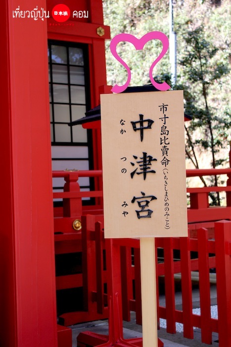 เดินต่อมาไม่ไกลก็พบศาลเจ้าหลังที่สอง สีแดงสด โดดเด่น ศาลเจ้าแห่งนี้มีชื่อว่า Nakatsuno Miya 中津宮 สามารถขอพรให้สมหวังเรื่องความรัก และให้ครองคู่กันอย่างยาวนาน