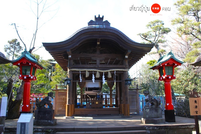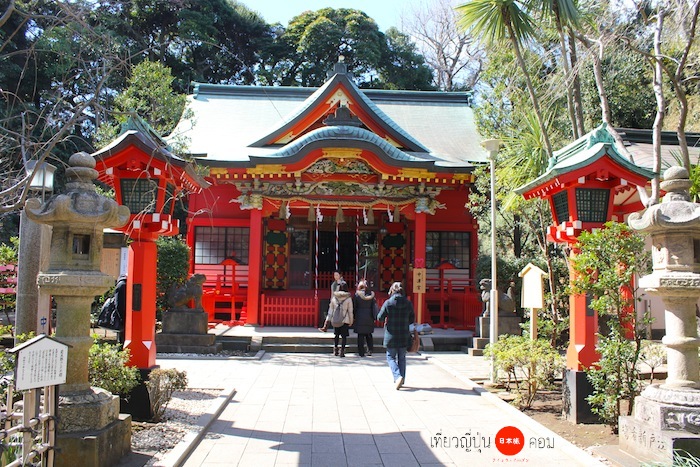 ศาลเจ้า Enoshima Jinja 江島神社 เป็นที่ประดิษฐานของเทพแห่งโชคลาภประจำเกาะแห่งนี้นั่นคือ ท่าน Benten หรือ Benzaiten 弁財天 และภายในศาลเจ้าแห่งนี้ยังแบ่งออกเป็นอีก 3 ศาลเล็ก แยกอยู่ทั่วทั้งเกาะ เป็นที่ประดิษฐานของเทพเจ้าทั้ง 3 องค์