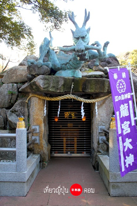 เกาะแห่งนี้เป็นที่ตั้งของศาลเจ้าเก่าแก่ที่เป็นตำนานของมังกรที่ถูกเล่าขานต่อกันมา (แน่นอนว่าต้องมีเสาโทริอิตั้งอยู่)
