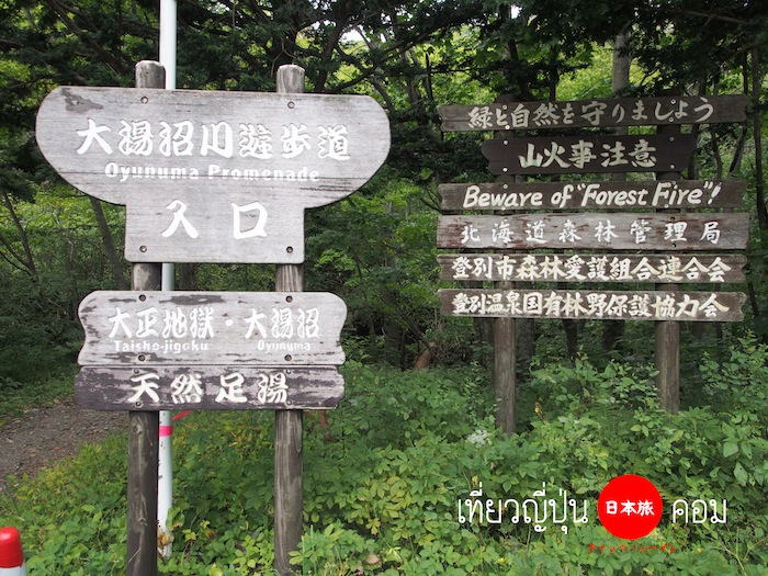 Noboribetsu 登別 เป็นเมืองน้ำพุร้อนที่มีชื่อเสียงบนเกาะฮอกไกโด ทั้งออนเซนธรรมชาติ และหุบเขา Jigokudani 地獄谷 ที่เราสามารถเห็นน้ำพุร้อนพุ่งขึ้นมาจากใต้ดินตามธรรมชาติได้ตลอดเวลา อีกทั้งยังเป็นแหล่งที่รวมรีสอร์ทสำหรับการพักผ่อนแช่ออนเซนที่ติดระดับต้นๆอีกด้วย ครั้งนี้เราจะไปพาคุณไปขึ้นไปบนเขาที่ Oyunuma 大湯沼 แหล่งออนเซนจากธรรมชาติ ใครที่ยังไม่คุ้นชินกับการลงแช่น้ำพุร้อนทั้งตัว ลองมาสัมผัสความรู้สึกได้ที่นี่ เพราะที่นี่เค้ามี Ashiyu 足湯 หรือ น้ำพุร้อนสำหรับแช่เท้า แบบธรรมชาติ อยู่ในกลางป่ากลางเขากันด้วย