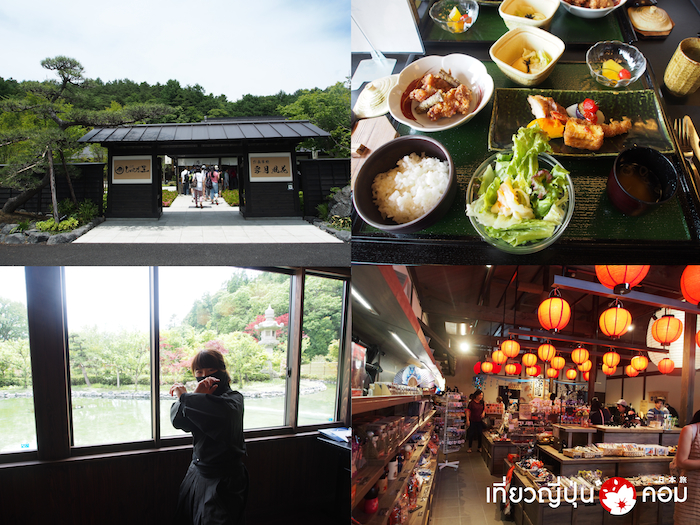 หลังจากชมวิวภูเขาไฟฟูจิกันอย่างเต็มอิ่มแล้ว เราก็จะไปทานอาหารกลางวันกันที่ภัตตาคาร Oshino-mura ที่นี่จะตกแต่งให้เป็นธีมของหมู่บ้านนินจา ซึ่งพนักงานเสริฟจะแต่งตัวเป็นนินจาอีกด้วย อาหารกลางวันที่เราจะทานกันวันนี้เป็นอาหารญี่ปุ่นแบบเซท ซึ่งสามารถเติมซุปมิโซะได้เรื่อยๆ แต่ที่ช่วยเพิ่มอรรถรสให้กับมื้ออาหารกลางวันก็น่าจะเป็นวิวของสวนที่สามารถมองเห็นภูเขาไฟฟูจิได้จากระยะใกล้มากๆ