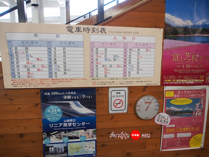 - วิธีที่ 2 ถ้าไปตรงกับวันหยุดเสาร์-อาทิตย์ แนะนำให้ขึ้นขบวน Holiday Rapid วิ่งตรงยาวถึง Kawaguchiko โดยไม่ต้องเปลี่ยนขบวน สำหรับคนที่ใช้ JR Pass จะต้องชำระเพิ่มส่วนต่างระหว่างจากสถานี Otsuki ถึง Kawaguchiko ปีนี้วิ่งเฉพาะวันที่ 11,12 และ 18,19 พ.ค. แต่จะเต็มไวมาก เพราะจะมีวันละ 1 รอบ (ขาไปออก 8.14 ถึง 10.36 ส่วนขากลับออก 16.00 ถึง 17.59)
