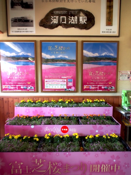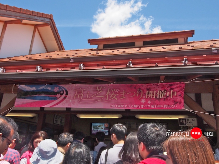 ด้านหน้าสถานี Kawaguchiko แถวยาวเหยียดที่เห็นนั้นคือ ทุกคนจะไปชมทุ่งพิงค์มอสกันทั้งหมดเลยครับ >_<