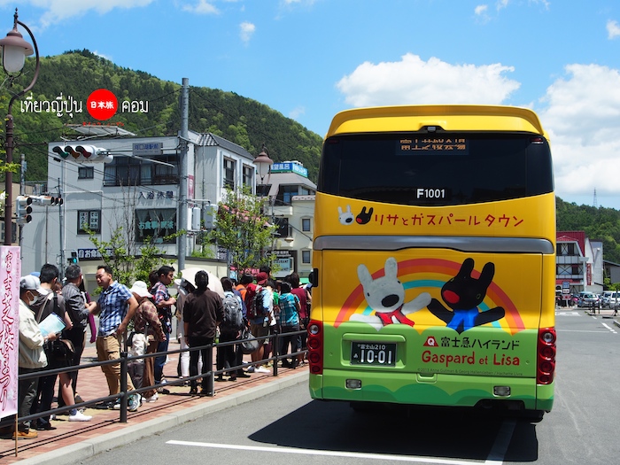 หลังจากนั่งรถไฟแล้ว สิ่งที่จะต้องซื้อเพิ่มคือตั๋วรถบัส Shibazakura Liner ให้บริการจากสถานี Kawaguchiko ใช้เวลาประมาณ 30 นาที มีตั๋วคอมโบจำหน่ายราคา 1,900 เยน โดยรวมค่ารถไป-กลับ และค่าเข้าชมไว้เรียบร้อยแล้ว
