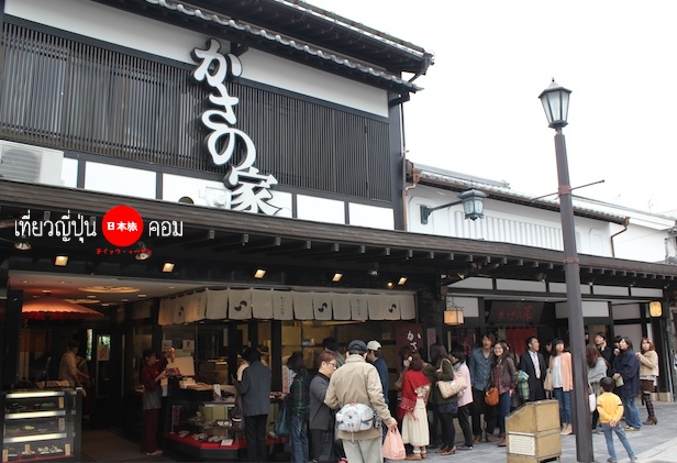ระหว่างทางเดินจากสถานี Dazaifu ไปยังเป้าหมายแรกของเราคือ Daizaifu Tenmangu Shrine จะพบกับเสาโทริอิ ตั้งอยู่ด้านหน้าทางเข้าของถนนที่มีร้านค้าต่างๆมากมาย ไม่ว่าจะเป็นร้านขนม ของฝาก ร้านอาหาร สามารถแวะทานกันได้ที่นี่และร้านขนมที่เราได้ตั๋วลองชิมฟรีจากตั๋วรถไฟที่เราซื้อมาก็ตั้งอยู่ที่ถนนแห่งนี้ มองไปร้านที่มีคนต่อคิวเยอะๆนั่นละใช่เลย ร้านนี้มีชื่อว่า Kasa no ya ยังไม่ต้องไปต่อคิวแย่งกับเค้ากันตอนนี้นะครับ เพราะมีให้ทานกันได้ทั้งวันไม่หมด รอตอนสายๆหลังจากเที่ยวเสร็จก่อนค่อยออกมาก็ได้ ช่วงนั้นคิวก็จะบางตาลงค่อนข้างเยอะแล้วเดี๋ยวเราค่อยมาคุยกันถึงรสชาดขนมแสนอร่อยของเจ้านี้กัน