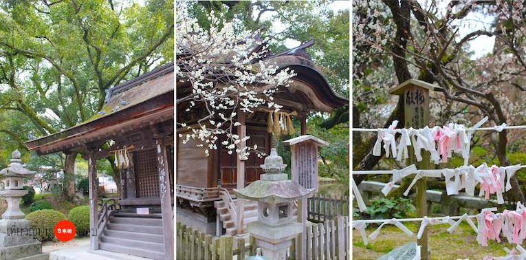 ที่ศาลเจ้าแห่งนี้ปลูกดอกบ๊วยไว้นานาพันธุ์มาก มีทั้งสีชมพูสด สีชมพูอ่อนสีขาว บางต้นดูเผินๆนึกว่าเป็นต้นซากุระ สวยงามมาก