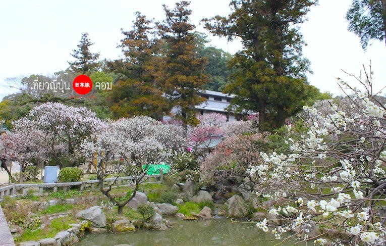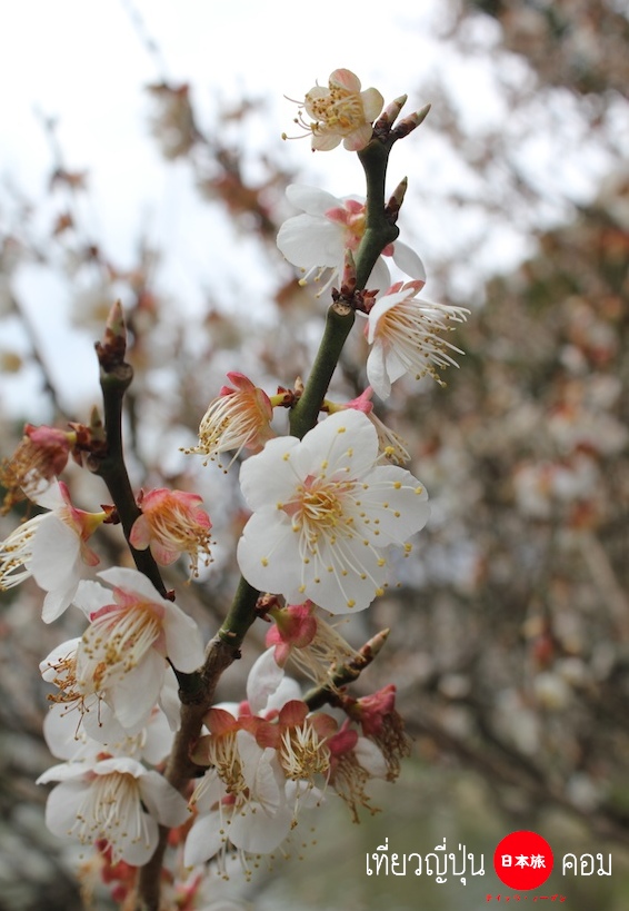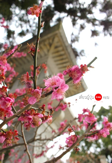 เริ่มเข้าบริเวณศาลเจ้าแล้ว ดอกบ๊วยนานานิดแข่งกันอวดโฉมงามกันอย่างเต็มที่เลย
