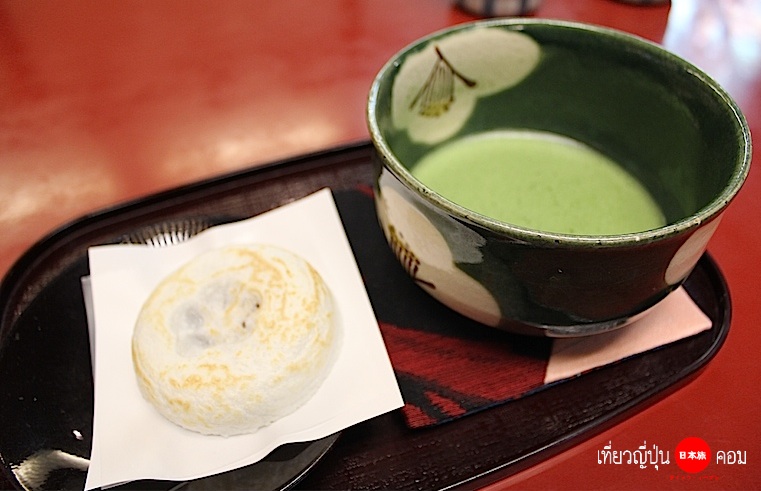 ได้เวลาทานขนมกันก่อนเดินทางกลับ ช่วงนี้ไม่มีคนต่อคิว เข้าไปยื่นตั๋วที่ได้มาพร้อมกับตั๋วรถไฟ ทางร้านก็จัดสรรให้เข้าไปนั่งและนำขนมโมจิทำร้อนๆ มาเสิร์ฟพร้อมกับชาเขียวเข้มข้น ขนมชนิดนี้มีชื่อเรียกยาวๆว่า Umegaemochi 梅ヶ枝餅 เนื่องจากในขนมโมจิจะมีไส้ถั่วแดงจะหวานมาก จึงต้องจิบชาเขียวไปพลาง เพื่อรสชาดที่กลมกล่อมครับแต่ชาเขียวขมจริงๆ แต่ถ้าใครติดใจในรสชาดขนมจะซื้อติดไม้ติดมือกลับไปก็ได้ 5 ชิ้น 525 เยน ทางร้านห่อจะให้สวยงามอย่างดี เข้าไปดูรายละเอียดเพิ่มเติมได้ที่นี่ >>>Kasa no ya<<<