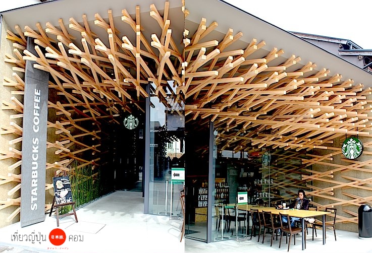 อีกร้านที่ไม่อยากให้พลาดคือ Starbucks ของที่นี่ ครั้งแรกที่เห็น สะดุดตากับเจ้าสถาปัตยกรรมชิ้นนี้มากมันช่างโดดเด่นสะดุดตาและไม่เหมือน Starbucks สาขาไหนๆ ตอนนั้นยังไม่รู้หรอกครับว่าเป็นผลงานของศิลปินท่านไหน จนต้องกลับมาค้นหาข้อมูลถึงได้ทราบว่า Starbucks สาขา Dazaifu แห่งนี้โด่งดังในหมู่สถาปนิกมาก เป็นผลงานของ Kengo Kuma ที่ขึ้นชื่อเรื่องการดีไซน์ได้อย่างสวยล้ำจริงๆ