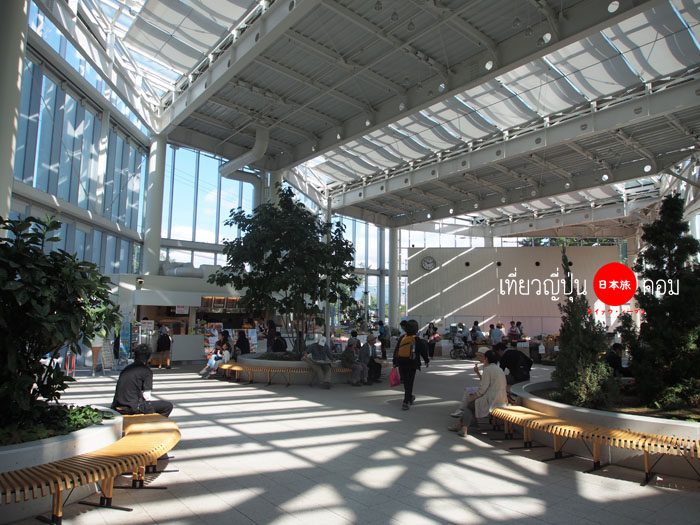 ชั้นล่างจะมีที่พักผ่อน เป็นสวนแบบอินดอร์ มีชาวบ้านมาจับจองพื้นที่ขายสินค้า ของสด ต่างๆในวันหยุดสุดสัปดาห์