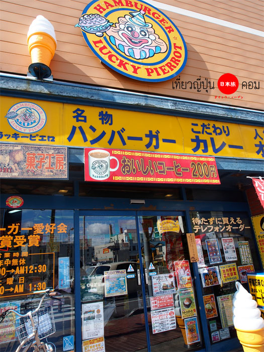 ที่ฮาโกดาเตะ มีร้านแฮมเบอเกอร์ชื่อดัง ที่เปิดสาขาทั่วเมือง ไม่ว่าจะไปที่ Motomachi, อาคารอิฐแดง, Goryokaku tower หรือใกล้ๆกับสถานี JR Hakodate จะต้องสะดุดตากับร้านแฮมเบอร์เกอร์ตัวตลก ที่ตกแต่งร้าน Circus Style ไว้ได้น่าสนใจ พร้อมทั้งเมนูที่แปลก น่าลิ้มลองไปซะทุกอย่าง ที่สำคัญราคาไม่แพงด้วย ทำให้ต้องมีคนเข้าคิวยาวตั้งแต่ร้านเปิดกันเลยทีเดียว