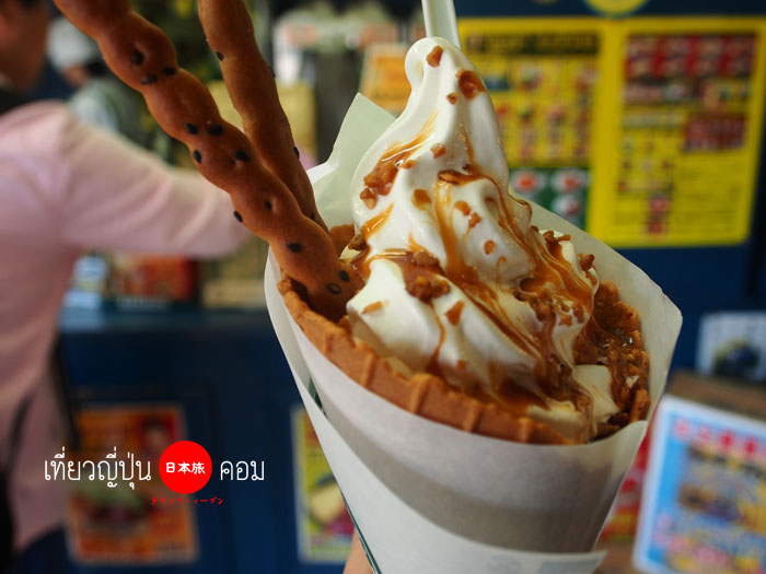 ระหว่างรอคิวที่อยู่ก่อนหน้าประมาณ 15 คิว ก็สั่งซอฟท์ครีม Caramel Nut Silk ราคา 350 เยนเท่านั้น