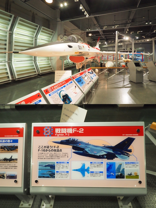 ด้านในของพิพิธภัณฑ์ก็มีเครื่องบินจำลอง F2 มาจาก F16 โดยตัวอักษร F มีความหมายว่า Fighter ซึ่งทางญี่ปุ่นเองใช้สำหรับการบินโชว์ทำ Blue Impulse ซึ่งคนชอบเครื่องบินก็จะได้เห็นเครื่องบินในระยะประชิดกันเลยทีเดียวค่ะ