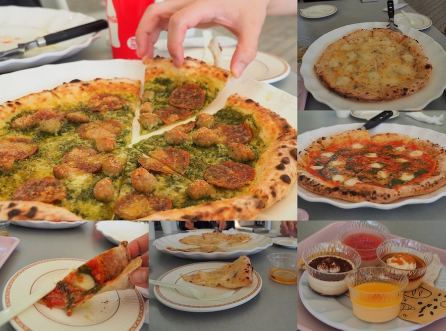 ถ้าหากสั่งพิซซ่า 1 ถาดเราจะได้เครื่องดื่มฟรี 1 แก้ว ในราคา 1,000 เยนต้นๆเท่านั้น พิซซ่ามีด้วยกัน 3 หน้า หน้าที่ขายดีคือหน้าที่เป็นซอสมะเขือเทศ ชีส และบาซิล ตามลำดับ เชฟแนะนำมาว่าให้ลองกินพิซซ่าหน้าชีสกับน้ำผึ้งดูสิ แล้วคุณจะรู้ว่ามันอร่อยมากๆ! ปิดท้ายด้วยเมนูของหวาน ที่เสิร์ฟเป็นถ้วยเล็กๆ เซ็ต 4 ถ้วย 300 เยน น่ารักมากๆเลย