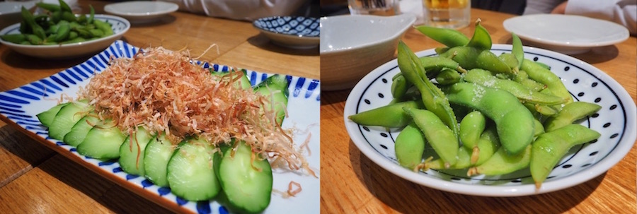 นอกจากนี้เรายังสั่งเมนูกับแกล้มเป็นแตงกวาหั่นโรยปลาคัตสึโอะฝอย และสายดื่มก็ห้ามพลาดถั่วแระญี่ปุ่นเลยค่ะ แทะไปดื่มไป ฟินมากๆ