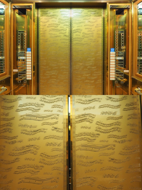 แม้แต่ในลิฟต์ก็ยังตกแต่งด้วยตัวโน๊ตเลย