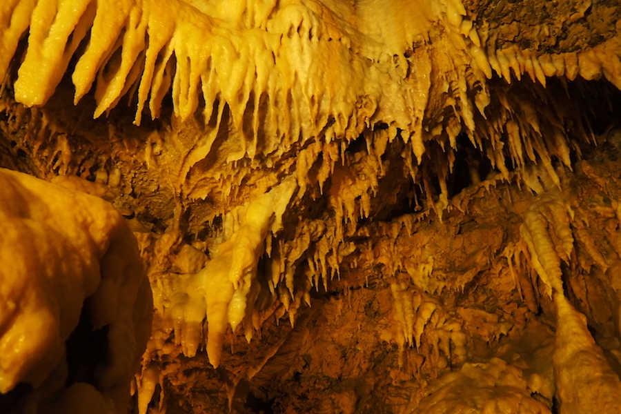 ที่ปากทางเข้าถ้ำเราจะได้เจอกับค้างคาว ซึ่งเขาจัดห้องกระจกให้เราได้เห็นตัวเป็นๆกันเลย ทางเดินเข้าตัวถ้ำจะค่อนข้างมืดสลัว เวลาเดินต้องระวังศีรษะ แล้วก็ต้องระวังลื่นด้วย เพราะถ้ำมีความชื้นสูง ผนังด้านข้างก็จะมีหินปูนที่ทับถมกันเป็นรูปต่างๆ