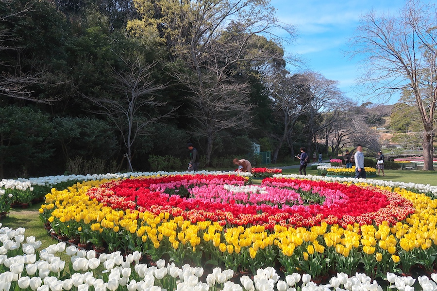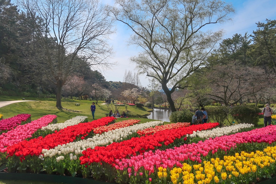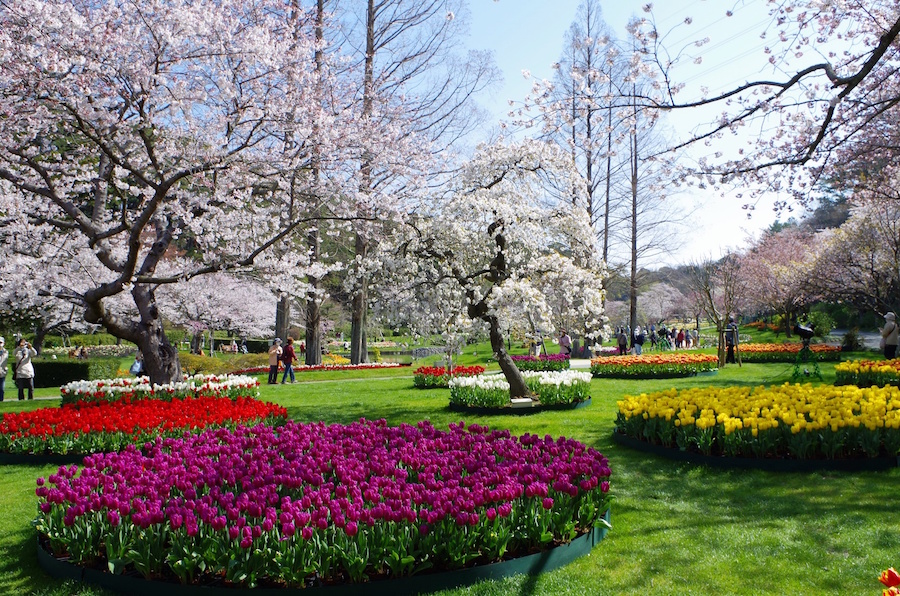 สวนดอกไม้แห่งนี้เป็นสวนดอกไม้ขนาดใหญ่ที่มีดอกไม้บานตลอดทั้งสี่ฤดูกาล มีการจัดแสดงดอกไม้ตลอดทั้งปี โดยเฉพาะในช่วงฤดูใบไม้ผลิปลายมีนาคมไปจนถึงต้นเดือนเมษายน จะมีช่วงที่ดอกทิวลิปและดอกซากุระบานสะพรั่งพร้อมกันทั้งสวน ไม่ว่าจะมองไปทางไหนก็สดใส โลกเป็นสีชมพูไปหมด!! ด้วยบรรยากาศของสวนที่ร่มรื่นและกว้างขวาง ที่นี่จึงเหมาะแก่การเดินทางมาพักผ่อนและถ่ายรูปเล่นเป็นอย่างยิ่ง