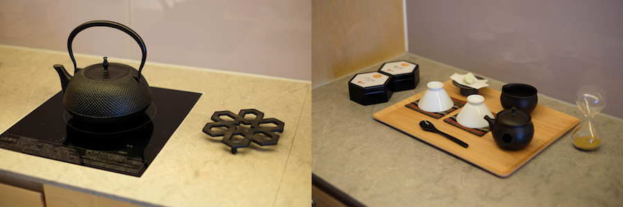 ในส่วนของห้องที่สามารถเพลิดเพลินกับอรรถรสของชาได้มากที่สุดคือห้อง Tsumugi no ma ห้องนี้พิเศษตรงที่มีครัวสำหรับชงชาโดยเฉพาะ!! และยังมีชาตามฤดูกาลที่สามารถดื่มได้เฉพาะที่ห้องนี้เท่านั้นด้วย