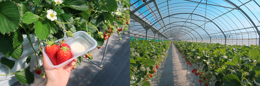 เมื่อเข้ามาในเรือนเพาะชำ จะได้รับถาดสำหรับใส่สตรอว์เบอร์รีพร้อมกับนมข้นเต็มๆถาด เราสามารถทานได้ไม่อั้นในระยะเวลา 30 นาที ขอบอกเลยว่าสตรอว์เบอร์รีที่นี่หอมหวานอร่อยชื่นใจมาก!! ยิ่งทานคู่กับนมข้นยิ่งอร่อยขึ้นไปอีก~