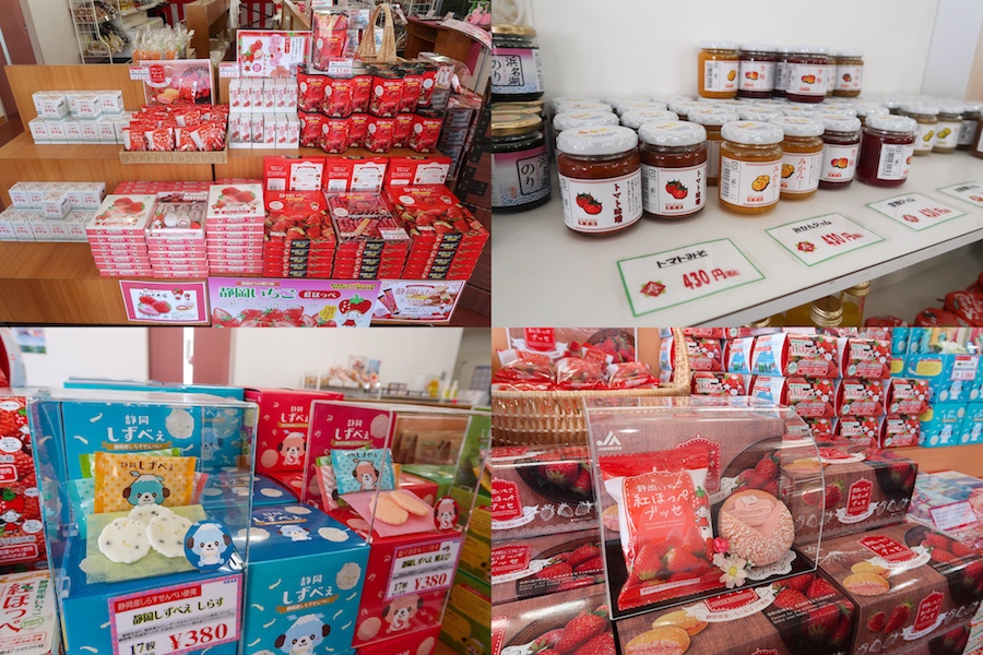 หากยังทานสตรอว์เบอร์รีไม่สะใจ ที่บริเวณจุดจำหน่ายสินค้าของฝากยังมีสินค้าทำจากสตรอว์เบอร์รีที่ทางฟาร์มทำขึ้นเองให้เลือกซื้อด้วย