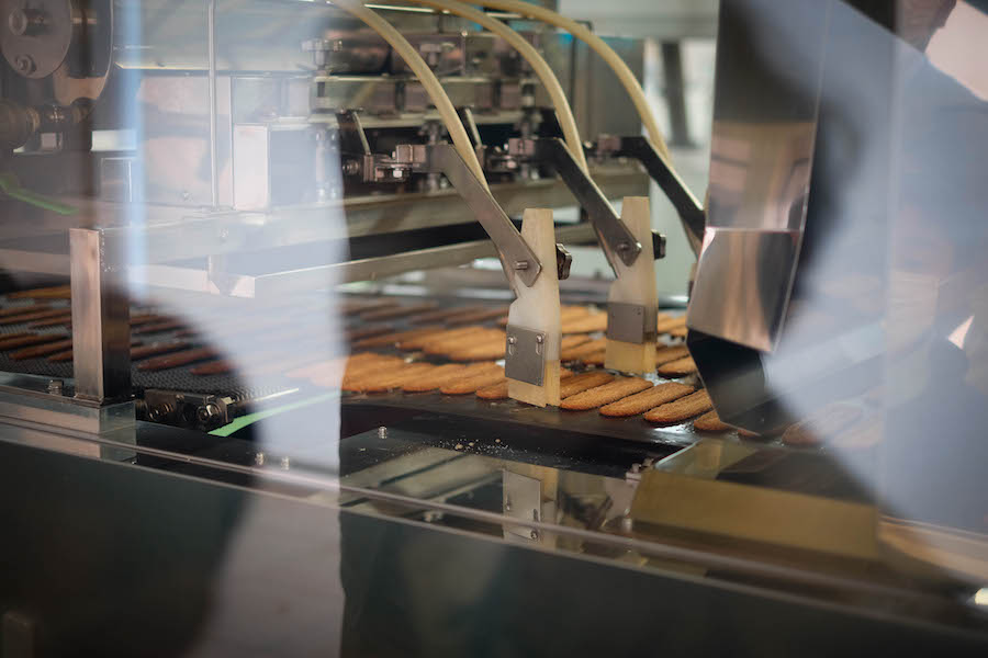 สามารถชมไลน์การผลิตจริงได้ทั้งหมด ซึ่งจะได้เห็นขั้นตอนการเริ่มอบไปจนถึงการแพ็คสินค้าลงในกล่อง
