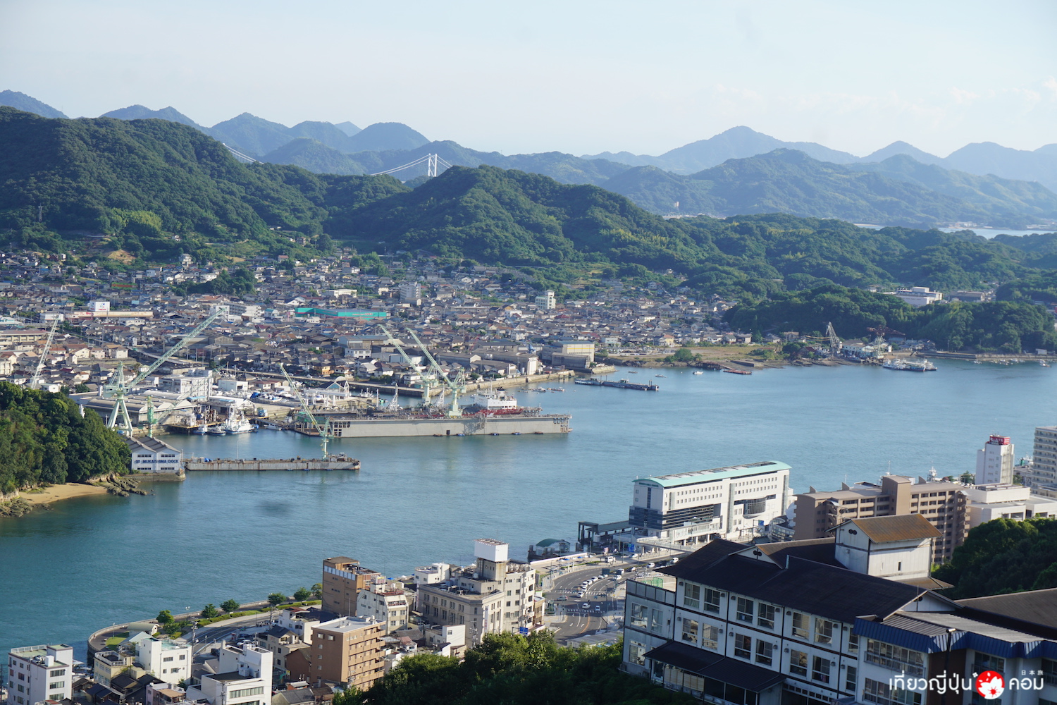 ณ จุดชมวิวด้านบน สวนเซ็นโคจิ (Senkoji Park) ชมทิวทัศน์ของเมืองโอโนมิจิ เส้นทางนักปั่นชิมานามิไคโด พร้อมกับชมวิวของทะเลเซโตะไ