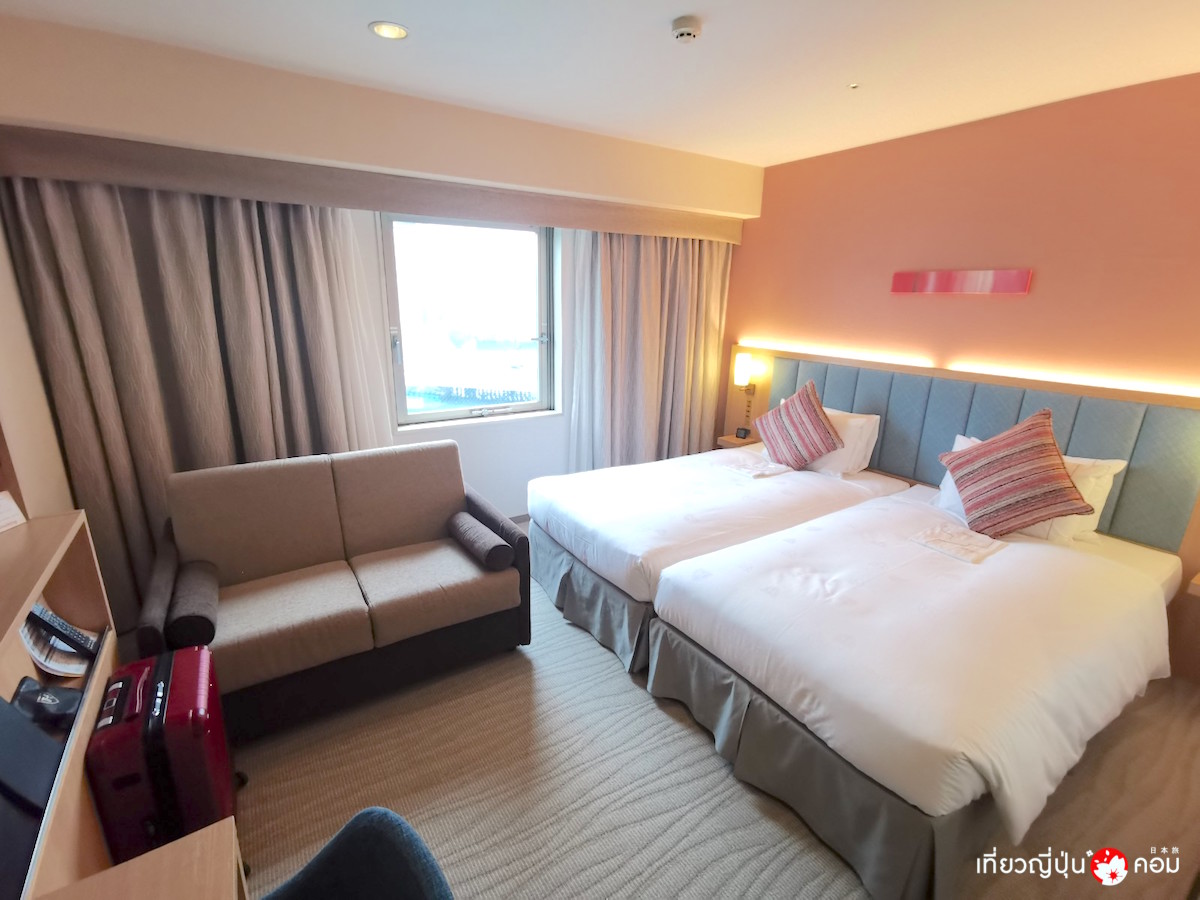 เมื่อถึงเวลาเช็คอิน ห้องพักของเราในวันนี้ ได้เป็นห้องประเภท Superior Twin ภายในห้องตกแต่งด้วยโทนสีอบอุ่น ให้ความรู้สึกเหมือนพักผ่อนในบ้าน มีโซฟาไว้ให้นั่งผ่อนคลาย และที่สำคัญคือพื้นที่ในห้องนั้นกว้างมาก สามารถกางกระเป๋าเดินทางขนาดใหญ่ 2 ใบได้สบายๆ