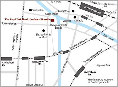 The Royal Park Hotel Hiroshima Riverside โรงแรมระดับ 4 ดาว แห่งนี้ ตั้งอยู่บริเวณใจกลางเมืองฮิโรชิมะ เดินจากสถานี Hiroshima ได้ประมาณ 8 นาที ใกล้กับย่านช็อปปิ้ง Hiroshima Danbara และสามารถขึ้นรถราง หรือเดินไปย่านช็อปปิ้งกลางเมืองที่ Hatchobori ก็ได้เช่นกัน ในส่วนของสิ่งอำนวยความสะดวก มีทุกอย่างครบครัน ขนาดห้องมีความกว้าง และมีห้องอาบน้ำส่วนตัว