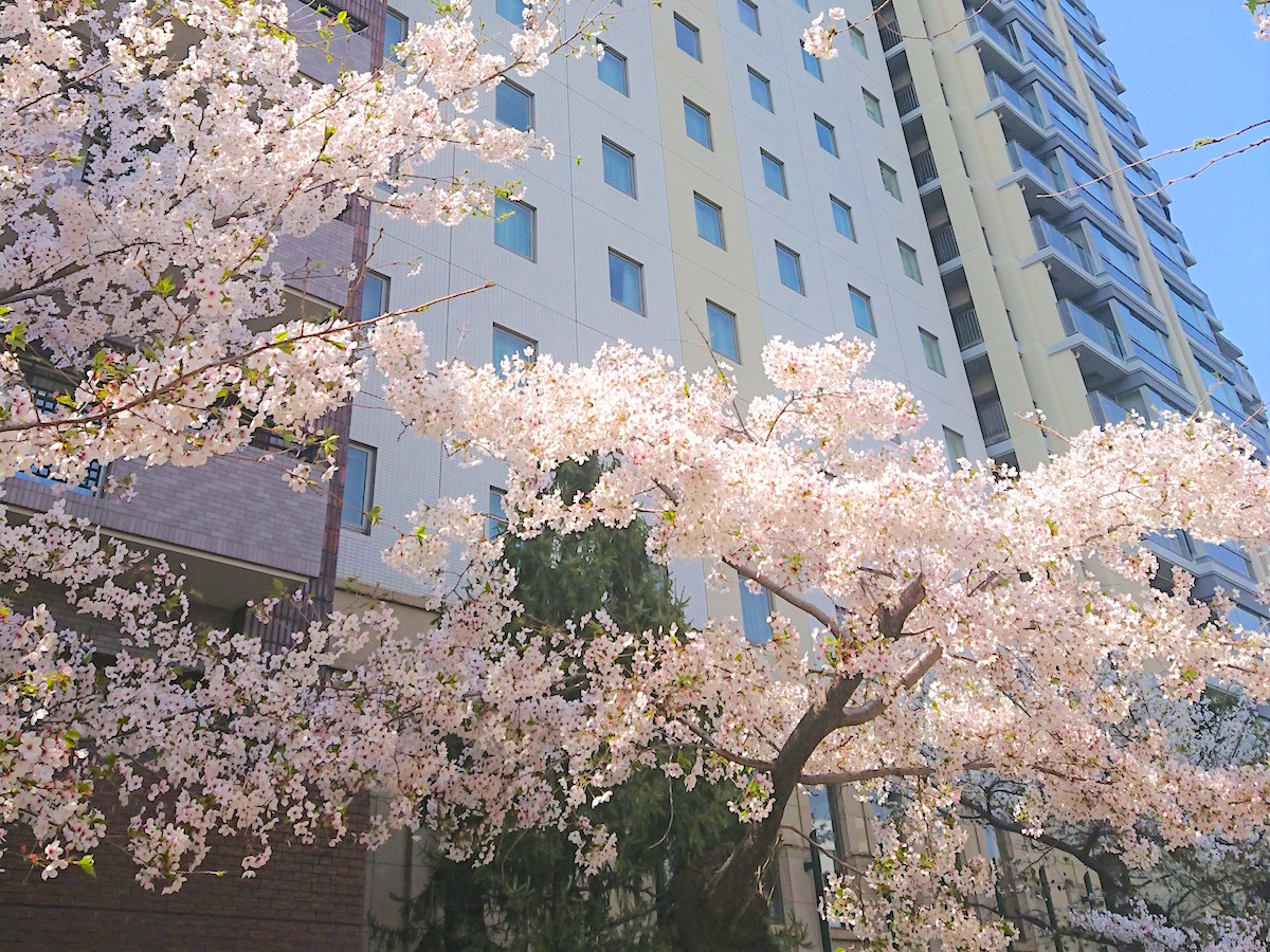 ในช่วงฤดูใบไม้ผลิ จะมีต้นซากุระบานสะพรั่ง สวยงาม ด้านหลังของโรงแรม