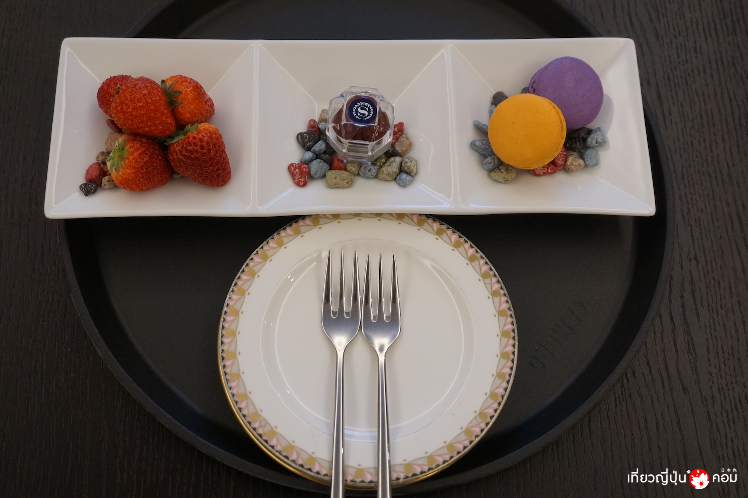 เมื่อเข้ามาถึงห้องพัก ก็จะมีพนักงานนำชุดขนมและผลไม้มาต้อนรับ