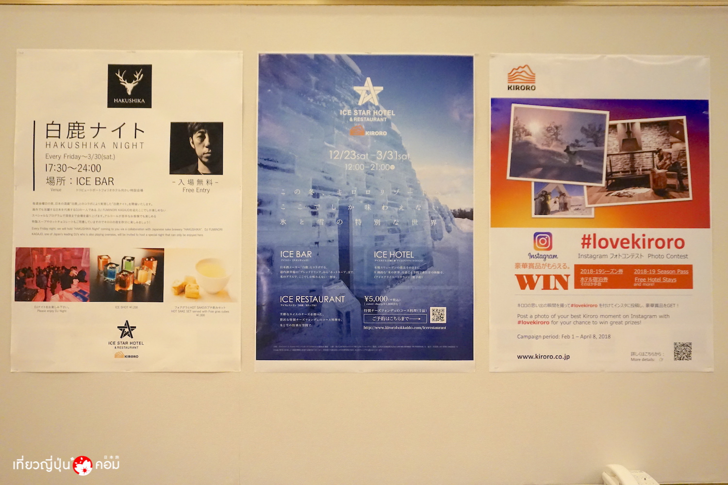 และถ้าหาได้มาเยือนคิโรโระช่วงฤดูหนาว (ช่วงปลายเดือนธันวาคม-ปลายเดือนมีนาคม) ต้องไม่พลาด Ice Star Hotel & Restaurant, Kiroro ที่มีให้บริการห้องพักน้ำเเข็ง,ภัตตาคารน้ำแข็ง, และบาร์น้ำแข็ง ให้หนาวถึงขั้วหัวใจ