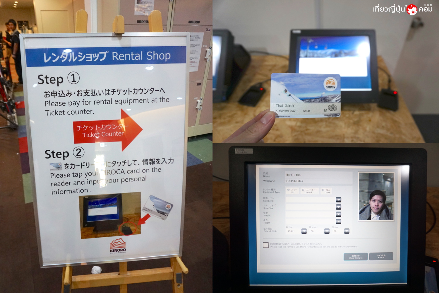 Rental Shop จะต้องชำระค่าอุปกรณ์ที่ต้องการจะเช่าก่อน และจะได้รับบัตร KIROCA (มีมัดจำ 500 เยน) นำมาลงทะเบียนที่เครื่อง ใส่ข้อมูลส่วนตัว รวมถึงขนาดชุดและรองเท้า และต้องพกบัตรนี้ไว้กับตัว เพื่อใช้เป็นบัตรผ่านประตูต่างๆ
