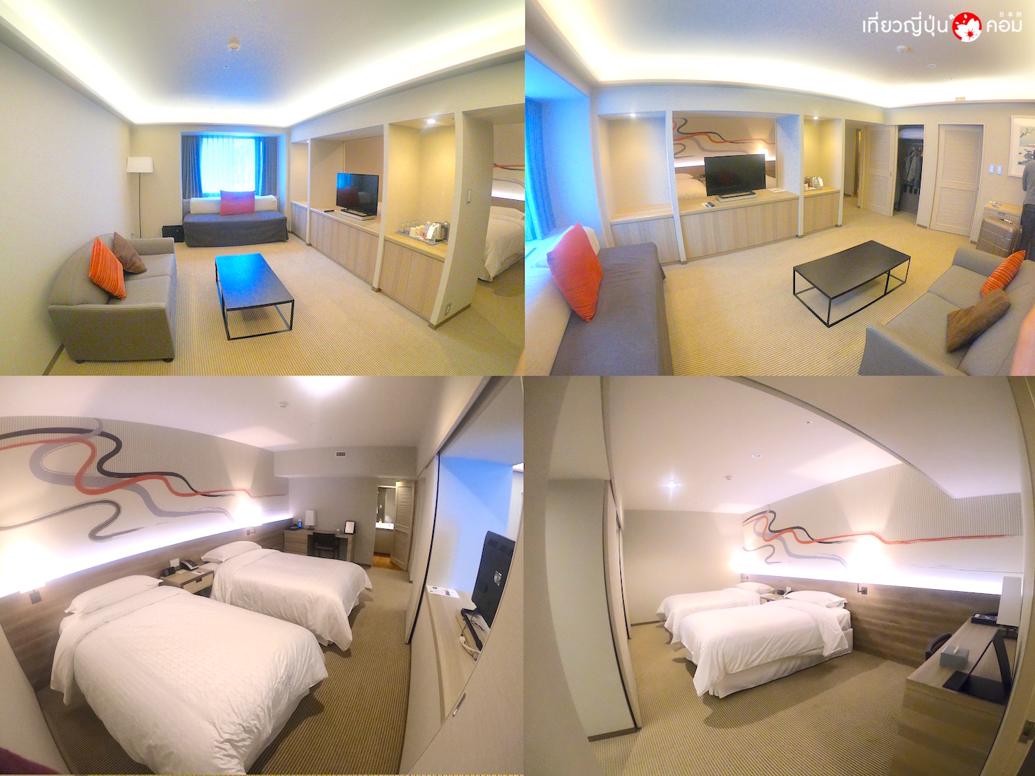 บรรยากาศภายในห้องที่เราพักในทริปนี้ แบ่งโซนห้องนั่งเล่น ห้องนอน ห้องน้ำ ได้อย่างเป็นสัดส่วน และกว้างขวางมาก