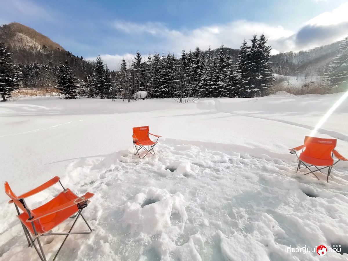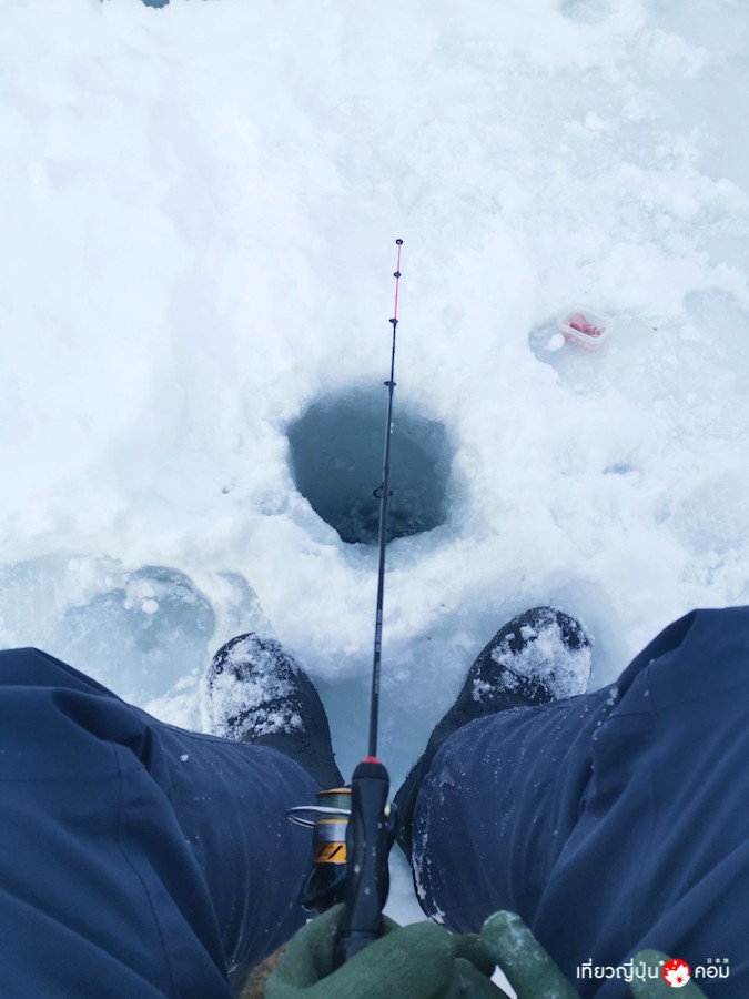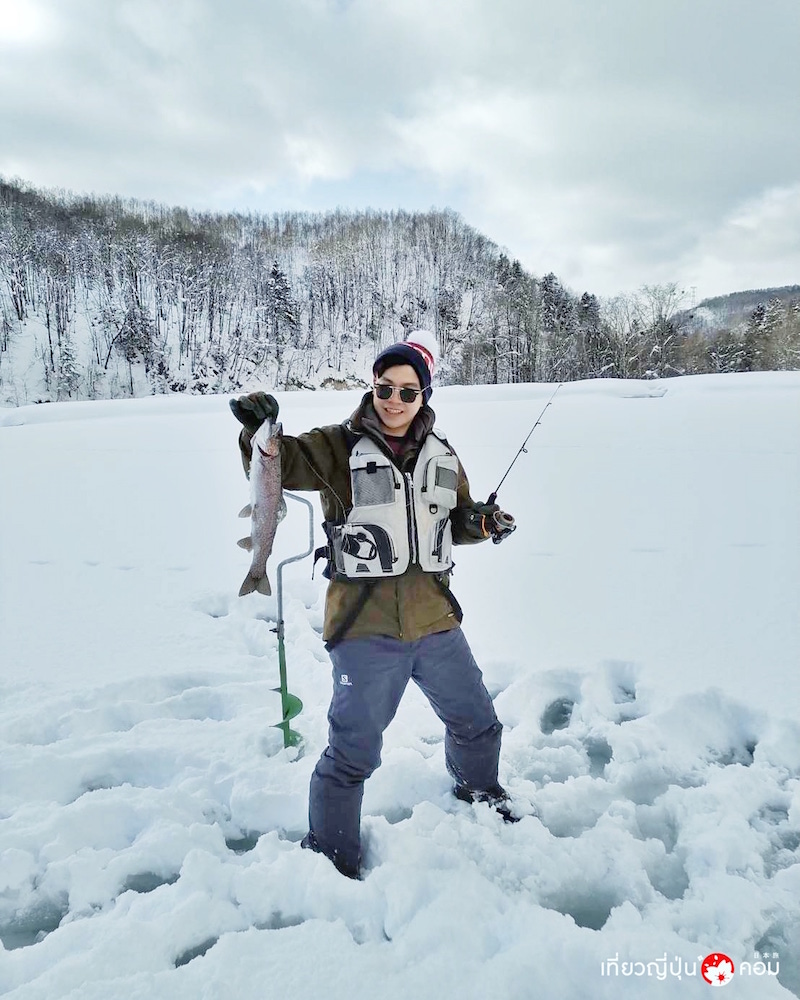 หนึ่งในกิจกรรมที่แปลกใหม่ก็คือ Ice Fishing ตกปลาแซลมอนบนทะเลสาบน้ำแข็
