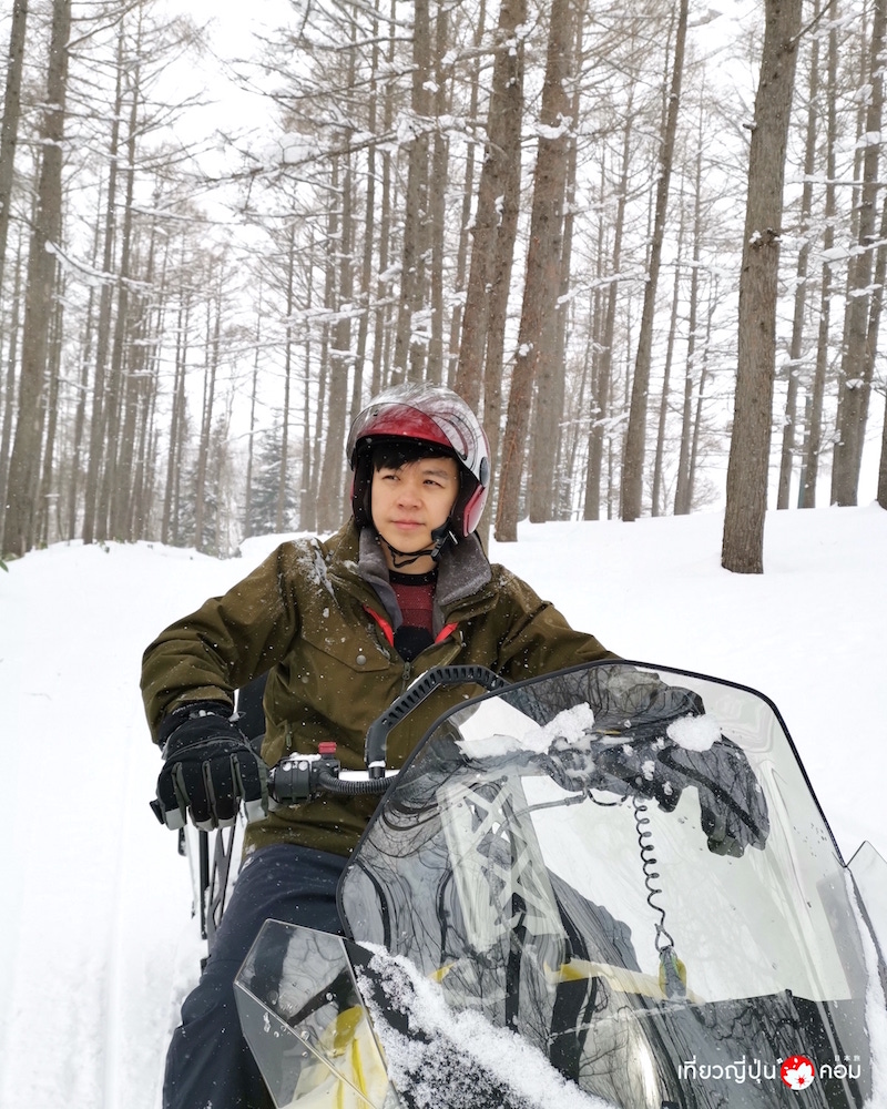 Snow Mobile กับคอร์สสั้นๆประมาณ 30 นาที ดื่มด่ำวิวสุดตระการตา มองไปทางไหนก็สีขาวโพลน เต็มอิ่มกับหิมะนุ่มๆ ขับง่ายไม่ยากอย่างที่คิด มีผู้ชำนาญคอยนำทาง คอยช่วยเหลือดูแลความปลอดภัย และช่วยถ่ายรูปมุมเท่ๆให้เราด้วย